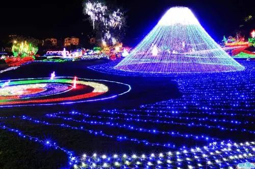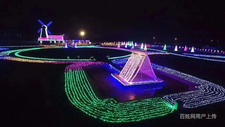 节日庆典布置,采用星星灯、灯带、小品灯、网灯等按照特定的造型,布置成图案、纹理等。